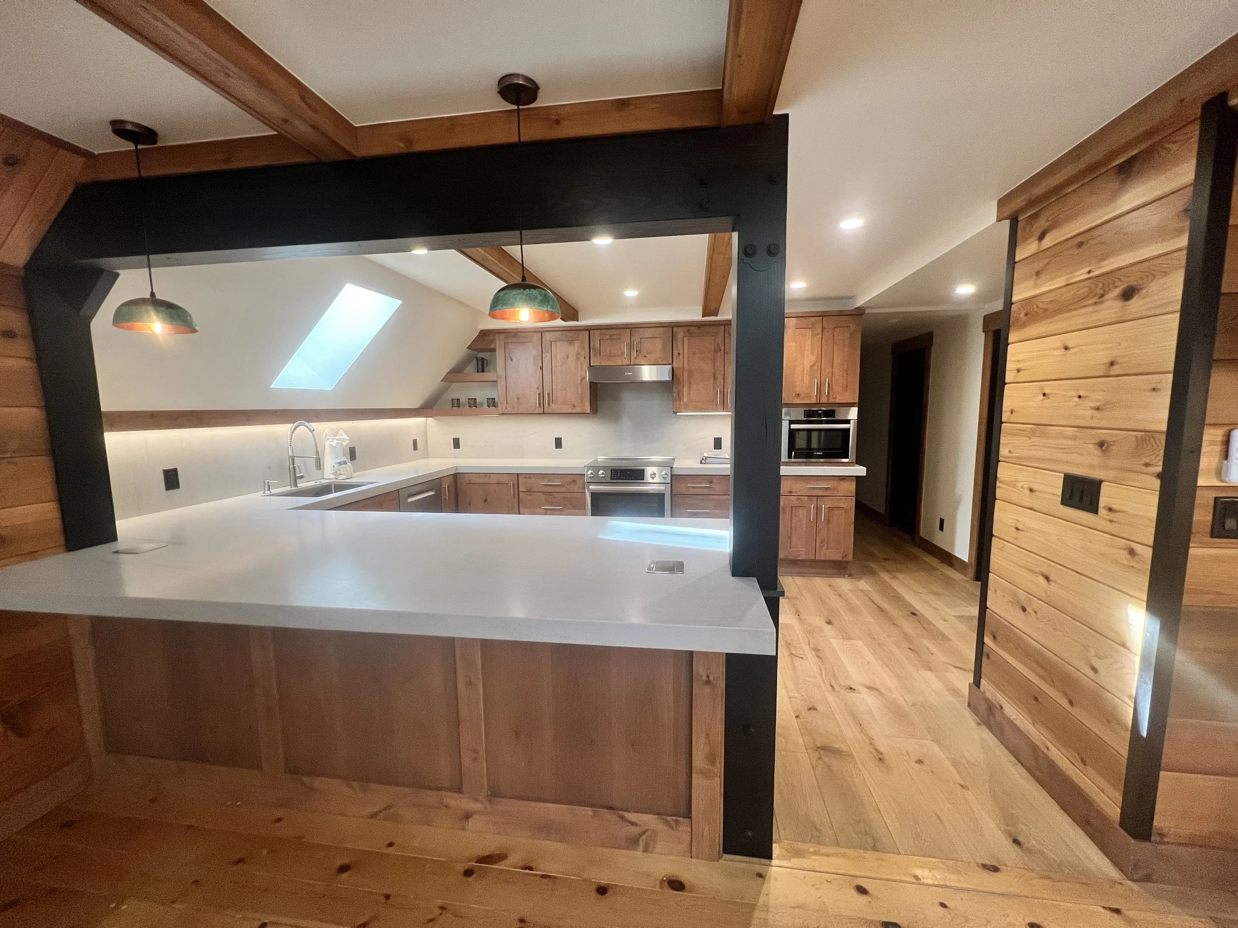 A spacious, light-filled kitchen featuring custom cabinetry, a generous island, and a seamless balance of wood and steel for effortless everyday use.